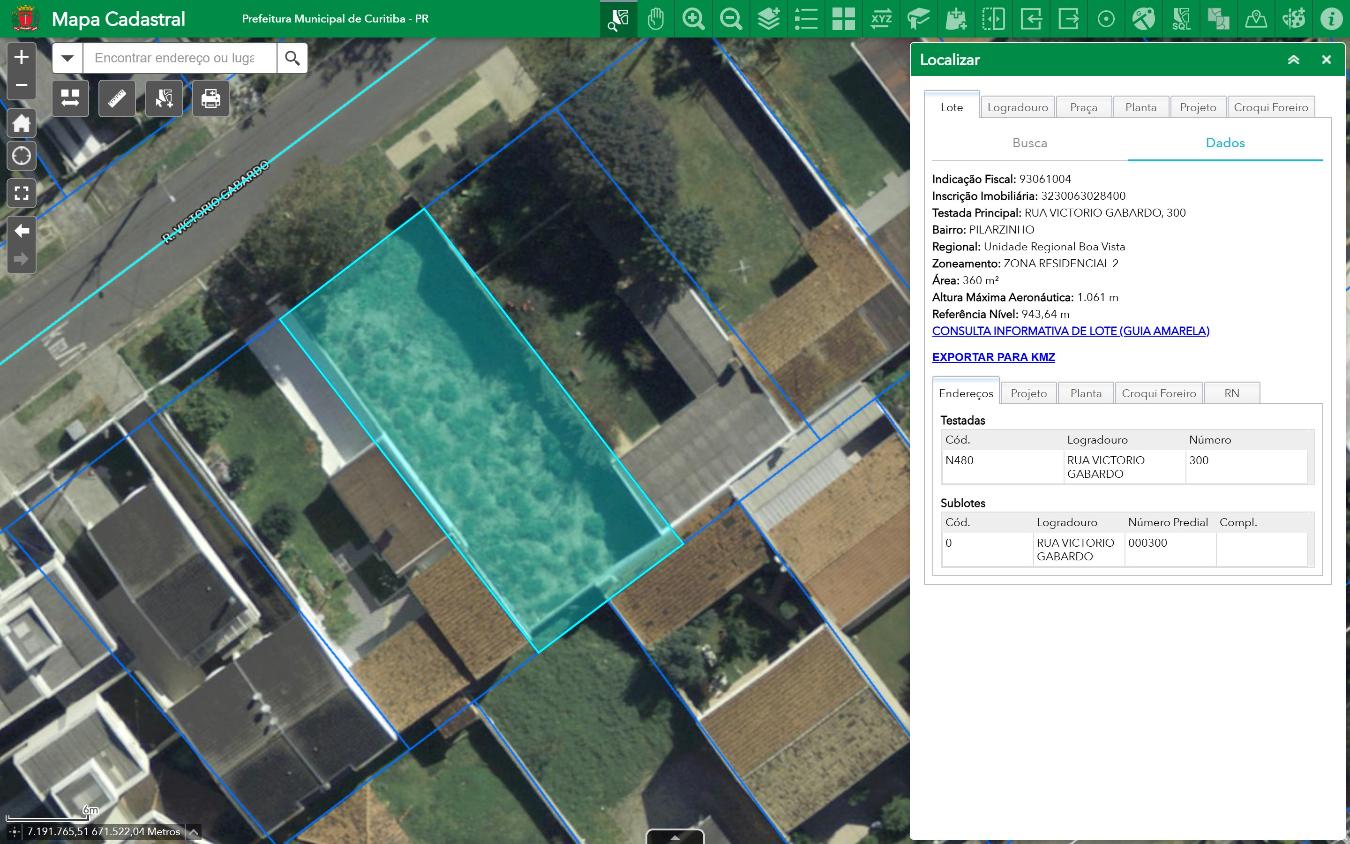 Terreno com área de 360 metros quadrados, terreno em formato retangular, cercado/murado, localizado na Rua Victório Gabardo n° 300, Bairro Pilarzinho, Curitiba-PR, terreno n° 4, da quadra 3, da planta Jardim dos Cedros, com indicação fiscal n° 93-061-004.000 do cadastro municipal, situado bairro do Pilarzinho, antiga colônia Abranches, Nesta Cidade, medindo 12, 00m, de frente para a rua Precila Fronza (prolongamento), do lado direito de quem olha da referida rua olha o imóvel mede 30 metros, onde confronta (12 metros), onde a confronta com a parte dos lotes n° 15 e 14, perfazendo a área de 360m², com as demais características e confrontações conforme a matrícula de n° 26018 da 1ª CRI de Curitiba.